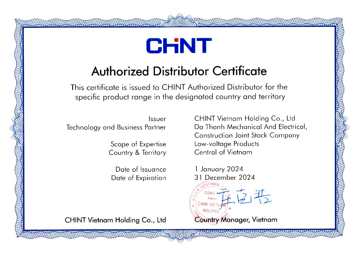 Công ty cổ phần xây dựng và cơ điện Đà Thành là Nhà phân phối Thiết bị CHINT tại thị trường Việt Nam.